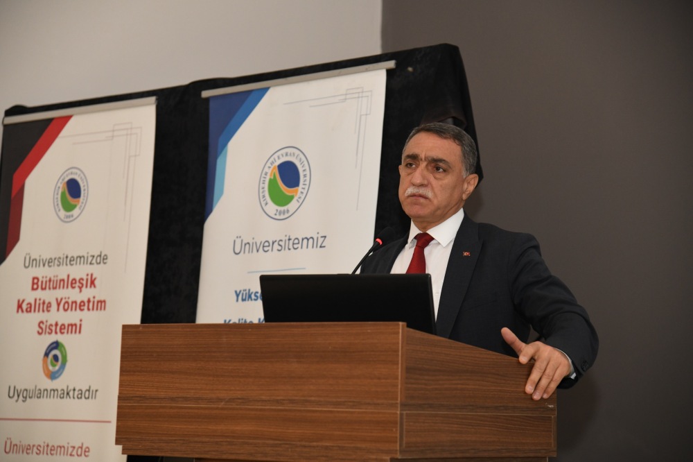 Rektör Prof. Dr. Mustafa Kasım Karahocagil de, Kırşehir Ahi Evran Üniversitesi olarak fakülte ve genel kalite süreçleri üzerine değerlendirmelerde bulunarak, yürütülen çalışmaların önemi ve üniversitenin kalite vizyonu hakkında bilgi verdi.