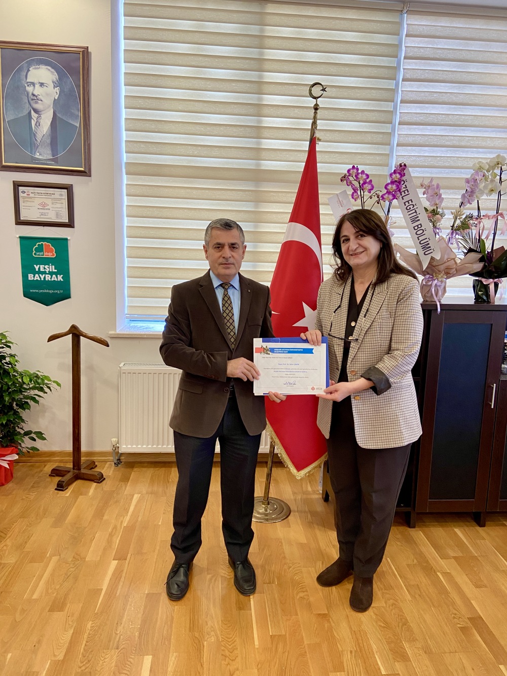 Üniversitemiz Rektör Yardımcısı Prof. Dr. Hüseyin Şimşek, Dekanımız Prof. Dr. Ayfer Şahin’i ziyaret ederek hayırlı olsun dileklerini iletti. Prof. Dr. Hüseyin Şimşek ayrıca, Dekanımızın göreve atanması vesilesiyle Kırşehir Ahi Evran Üniversitesini Geliştirme Vakfı’na yaptığı bağışa ilişkin belgeyi takdim etti.