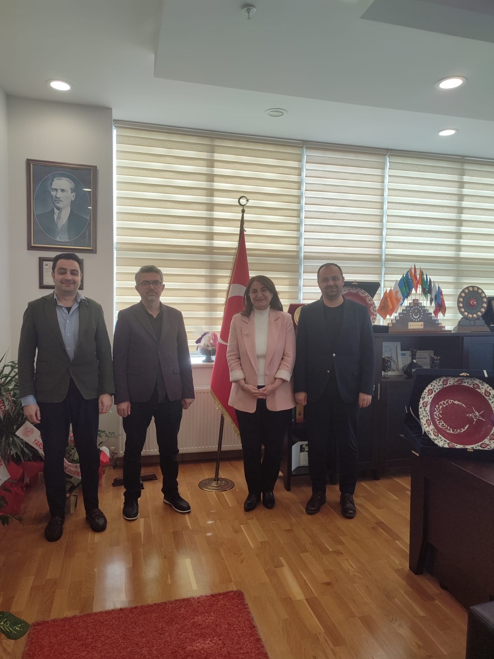 Sosyal Bilimler Meslek Yüksekokulu Müdürü Doç. Dr. Muhammed Maruf ile Müdür Yardımcıları Doç. Dr. Emin Efecan Aktaş ve Öğr. Gör. Murat Davutoğlu, Dekanımız Prof. Dr. Ayfer Şahin’i yeni görevi nedeniyle tebrik etmek üzere ziyaret etti. Ziyarette, üniversitemizin eğitim ve akademik çalışmaları hakkında görüş alışverişinde bulunuldu.