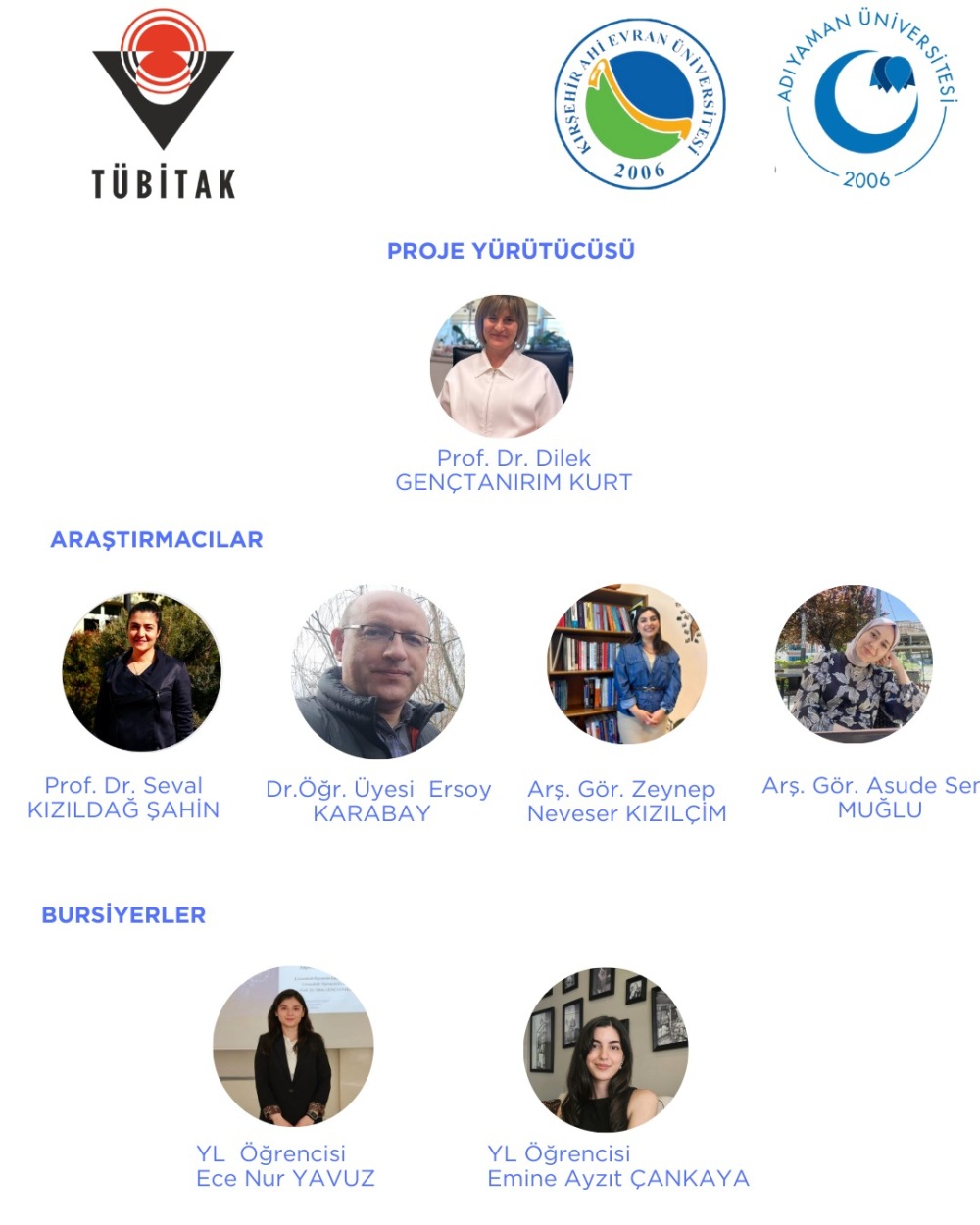 Araştırmacılar: Prof. Dr. Seval KIZILDAĞ ŞAHİN (Adıyaman Üniversitesi), Dr. Öğr. Üyesi Ersoy KARABAY, Arş. Gör. Zeynep Neveser KIZILÇIM, Arş. Gör. Asude Sena MUĞLU