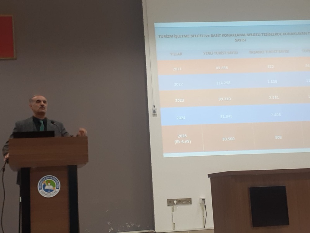 Kırşehir Ahi Evran Üniversitesi Eğitim Fakültesi Eğitimin Felsefi, Sosyal ve Tarihi Temelleri Anabilim dalı öğretim üyesi Prof. Dr. Recep Özkan’ın öncülüğünde, Eğitim Sosyolojisi dersi kapsamında fakülte öğrencilerine yönelik bir konferans düzenlendi. Kırşehir İl Kültür ve Turizm Müdür Yardımcısı Sayın Eyüp Temur’un konuşmacı olarak katıldığı konferansta, Kırşehir’in kültürel değerleri ve kültür-eğitim ilişkisi ele alındı.
